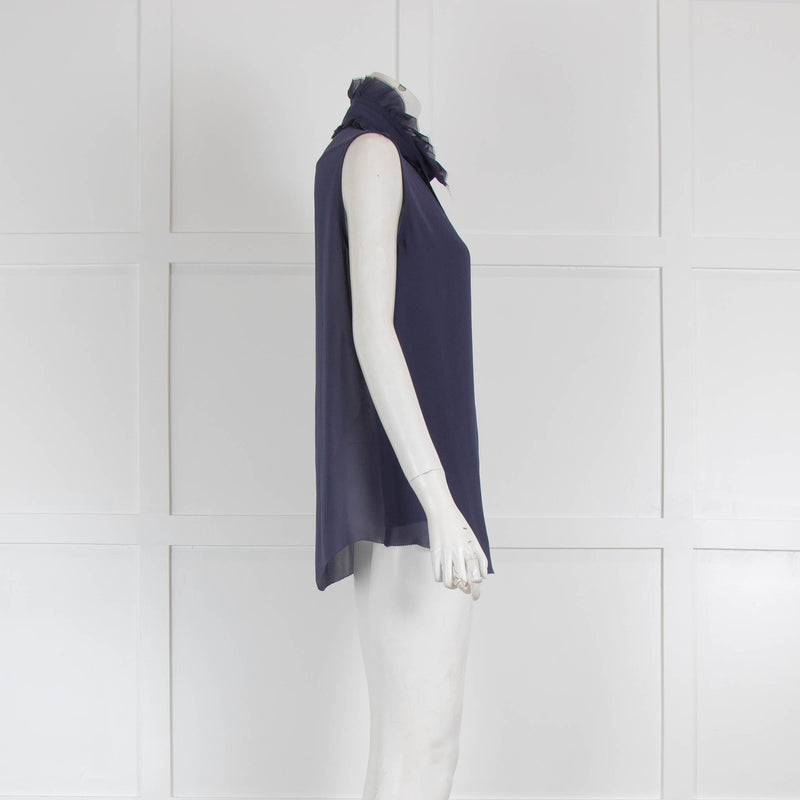 Acne Blue Sleeveless Ruffle Neck Blouse