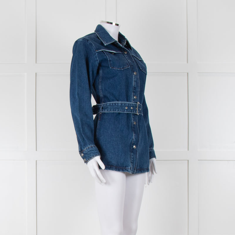A.P.C Blue Denim Open Front Belted Long Shirt