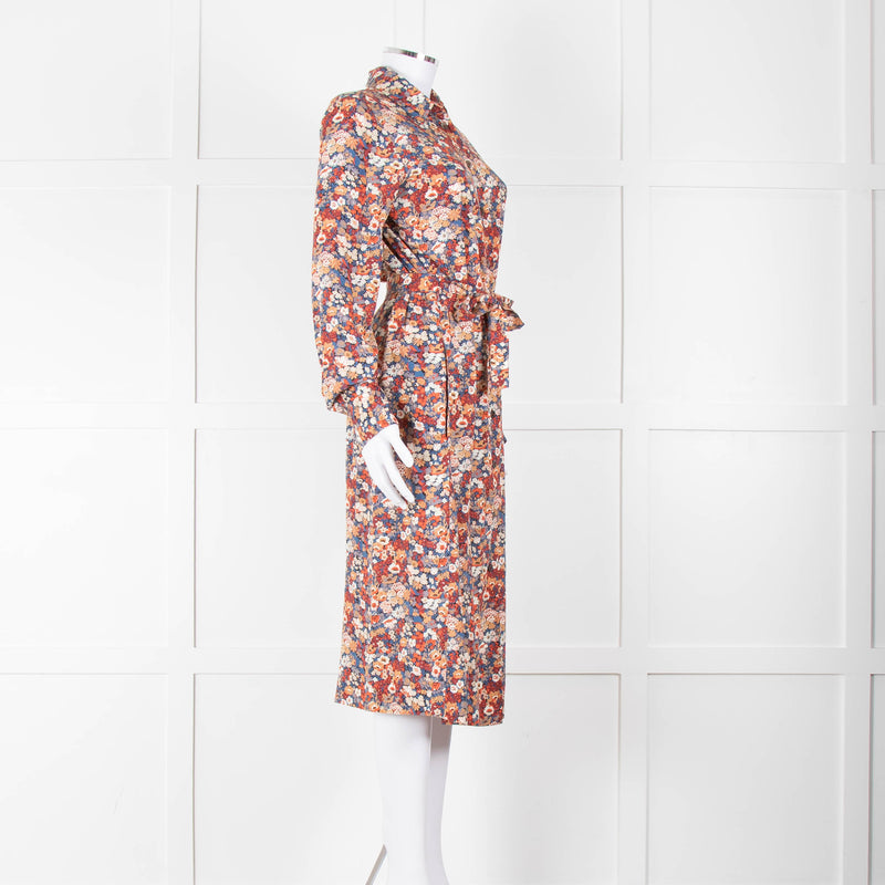 A.P.C Blue Orange Floral Button Up Belted Long Dress