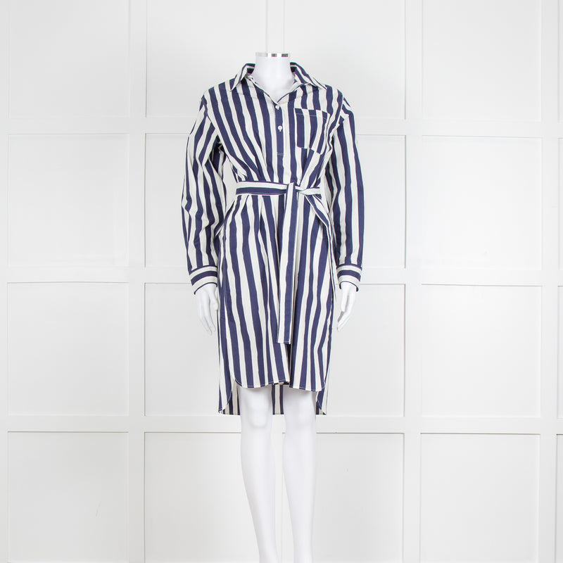 A.P.C Blue and White Striped Belted Shirt Dress