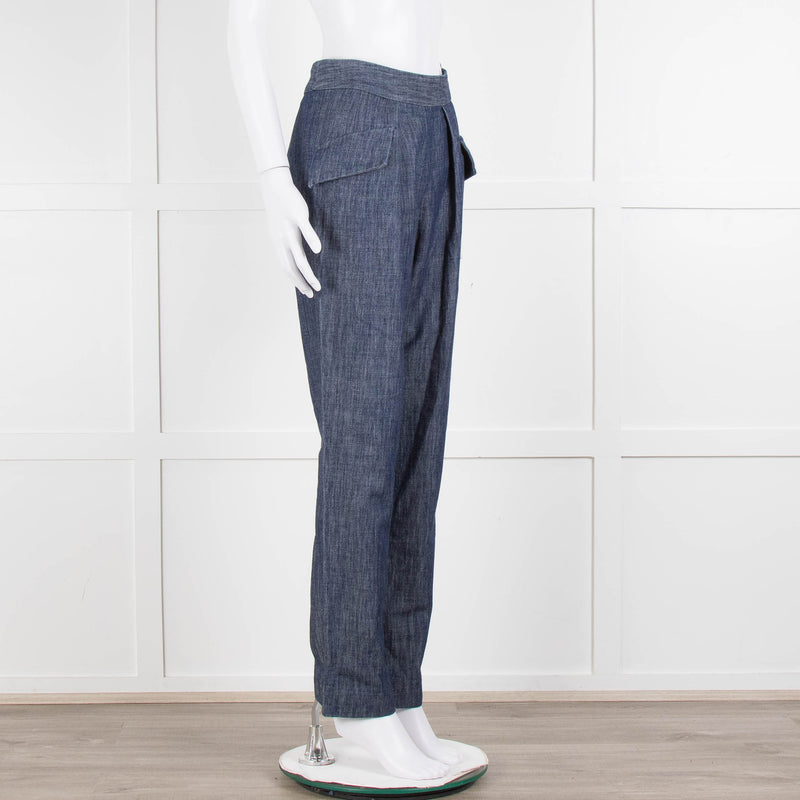 Adam Lippes Blue Denim Front Pleated Pocket Detail Trousers