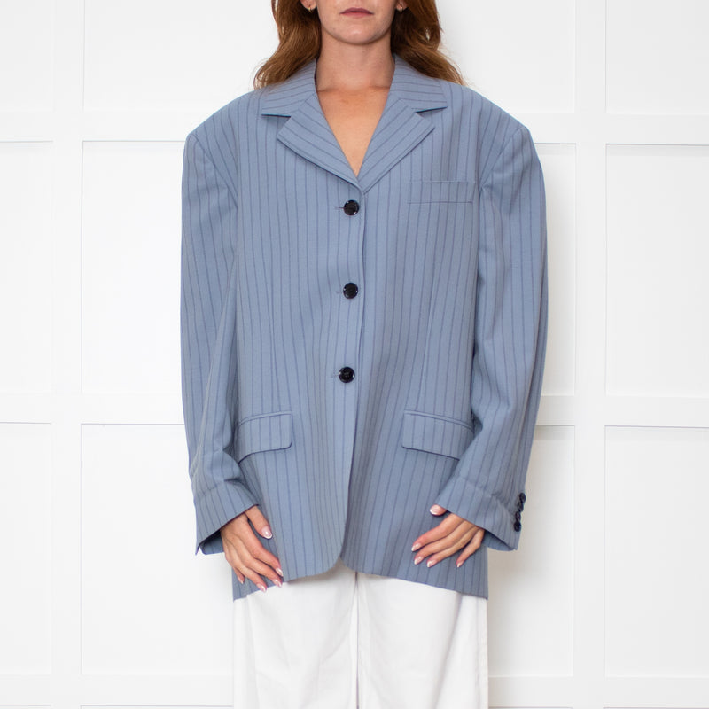 Acne Studios Juylie Oversized Blue Pinstriped Suit Blazer