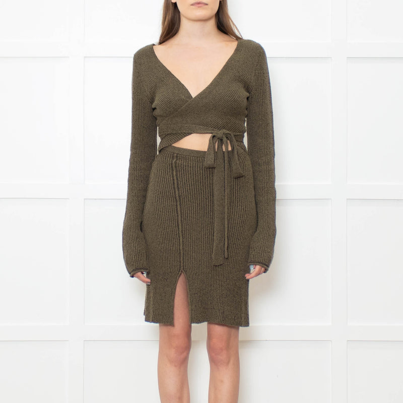Acne Studios Khaki Green Rib Knit Wrap Front Dress