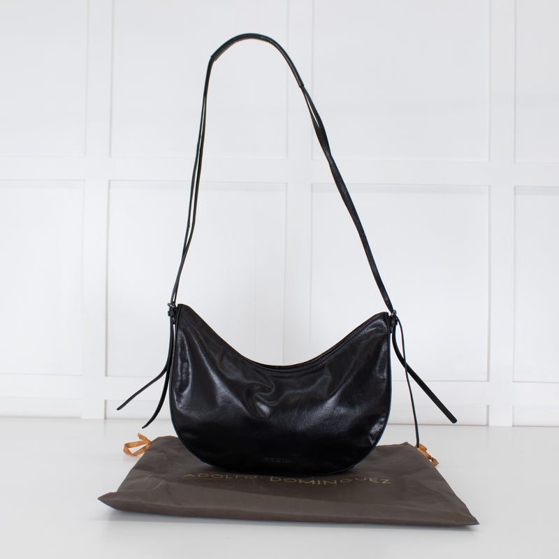 Adolfo Dominguez Black Leather Half Moon Crossbody Bag