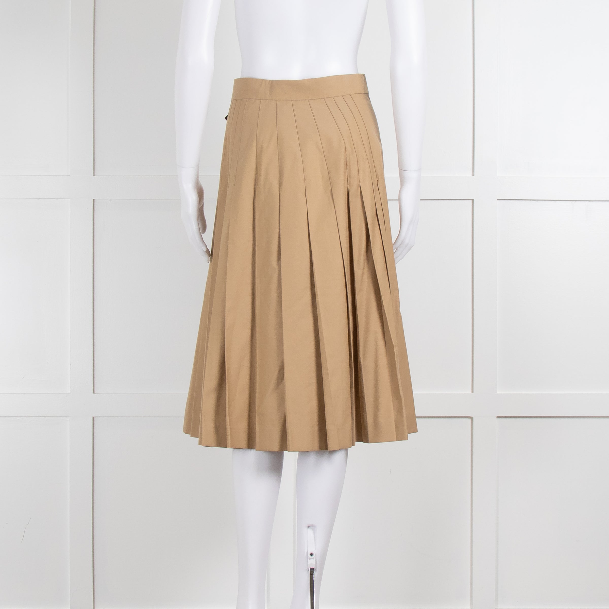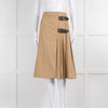 Burberry Camel Pleated Skirt with Buckle Fastenings