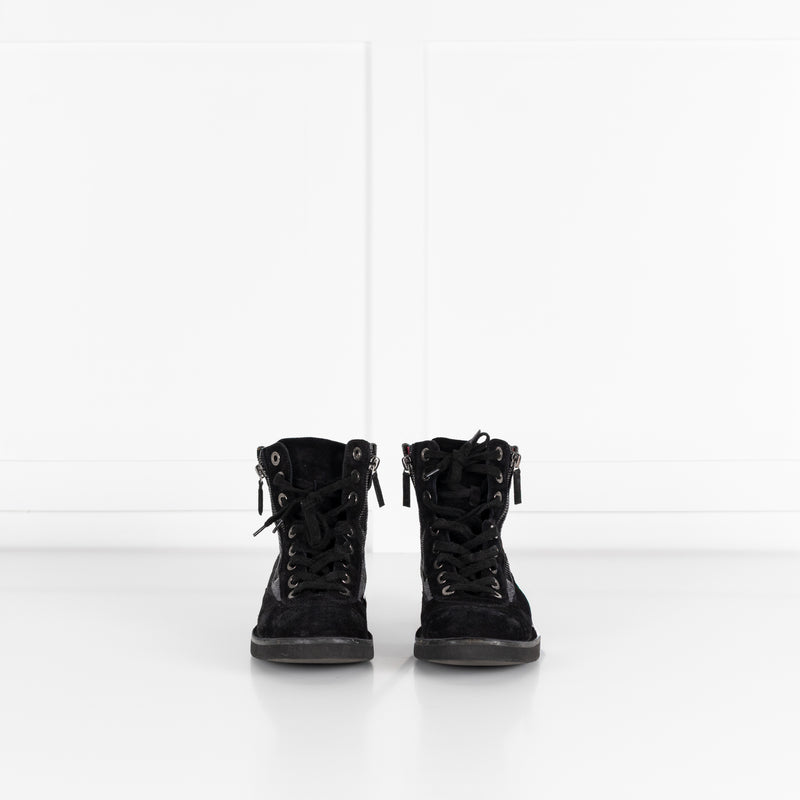 Chanel Black Suede And Canvas Lace Up Ankle Boots