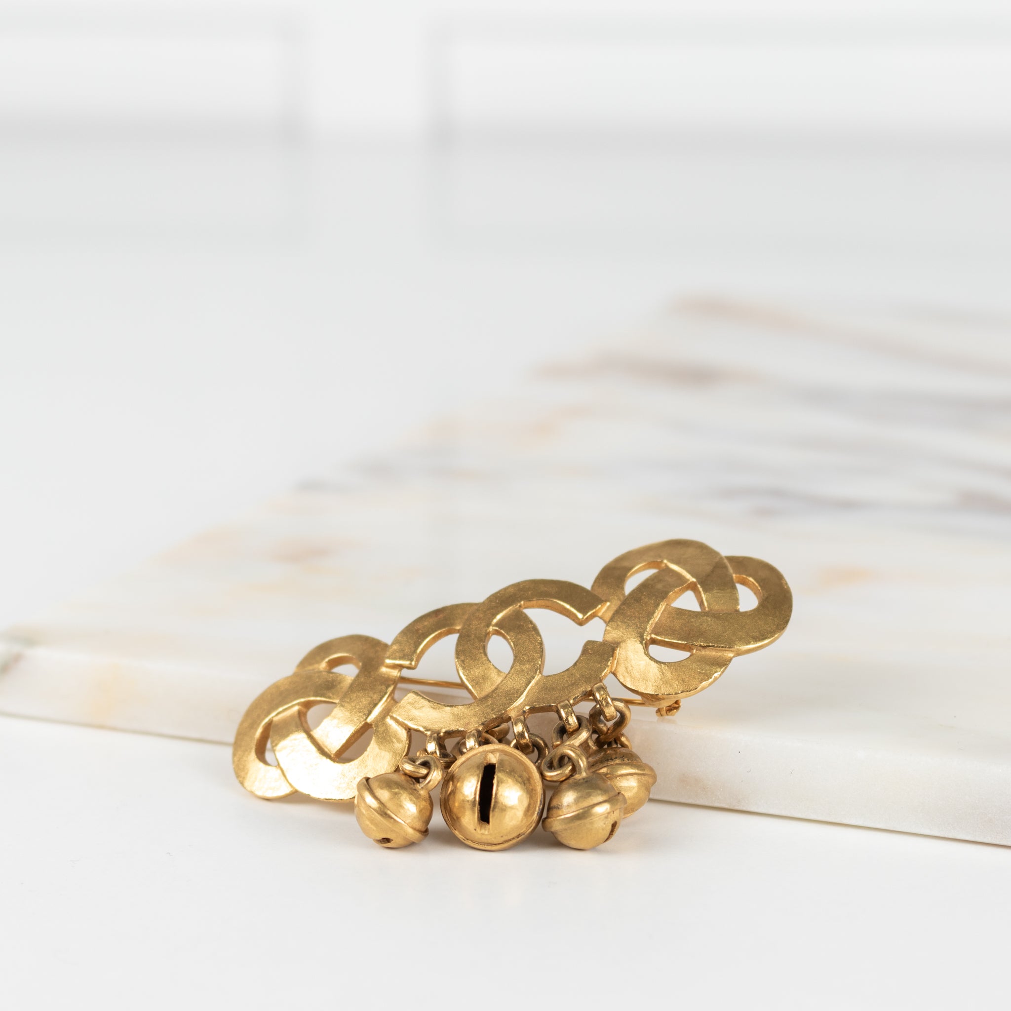Chanel Vintage CC Gold Bell brooch pin with gold 95P.