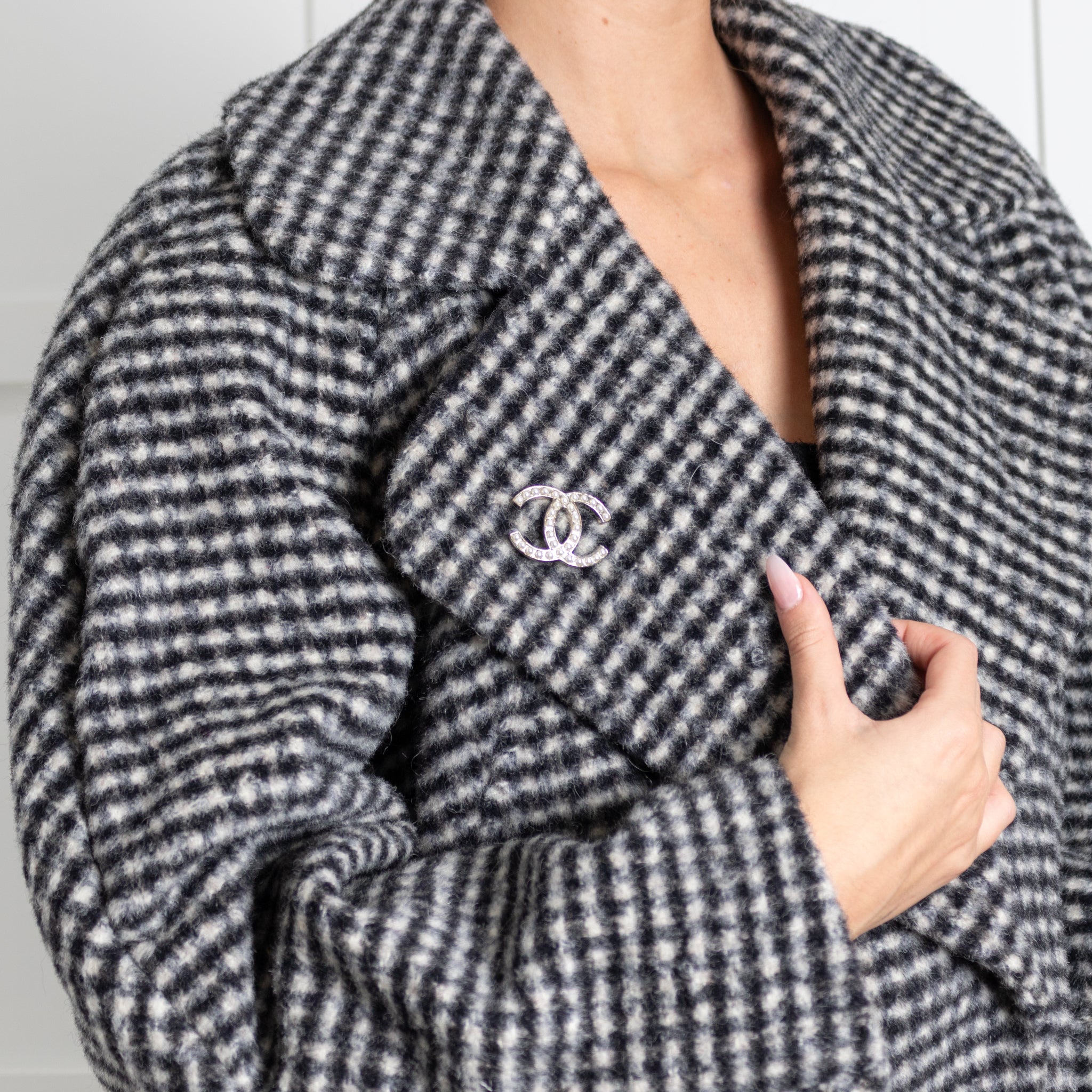 Chanel (2008) silver-tone metal faux pearl CC brooch fixed with a safety pin style closure on the back.