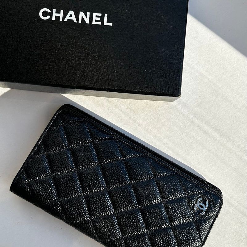 Chanel Quilted Black Caviar Logo Bowler Bag