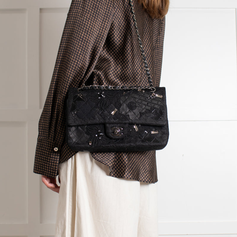 Chanel Black Lace and Patent 2016 Metiers D'art Flap with Gunmetal Hardware