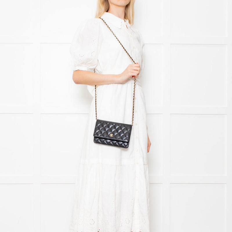 Chanel Black Lambskin Leather Wallet On Chain Bag