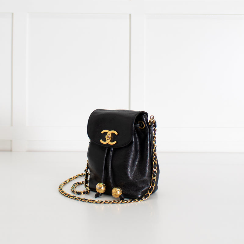 Chanel Black Caviar Leather Vintage Classic Flap Drawstring Crossbody Bag