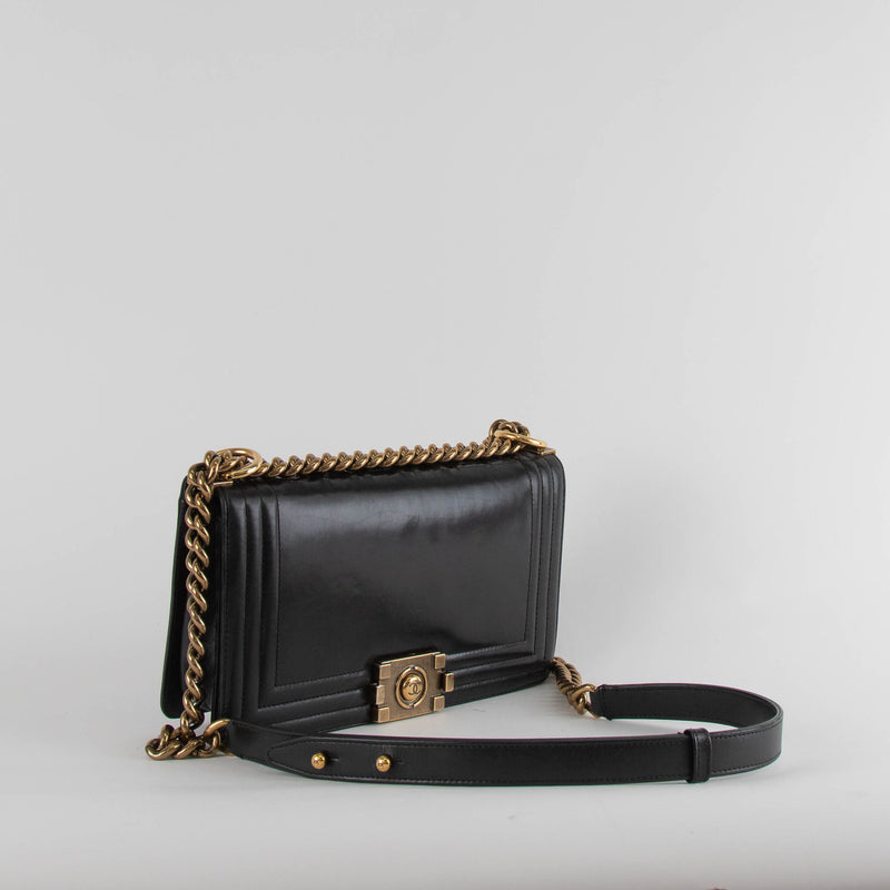 Chanel Black Lambskin Large Quilted Boy Bag with Gold Hardware