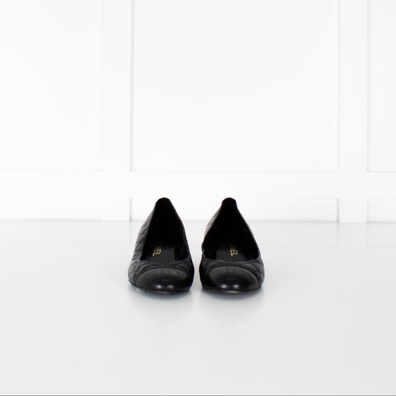 Chanel Black Quilted Block Heel Flats with Scallop Trim
