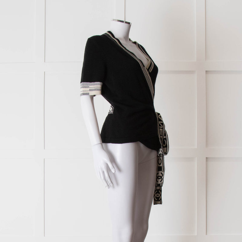 Chanel Black Cashmere Short Sleeve Logo Cardigan