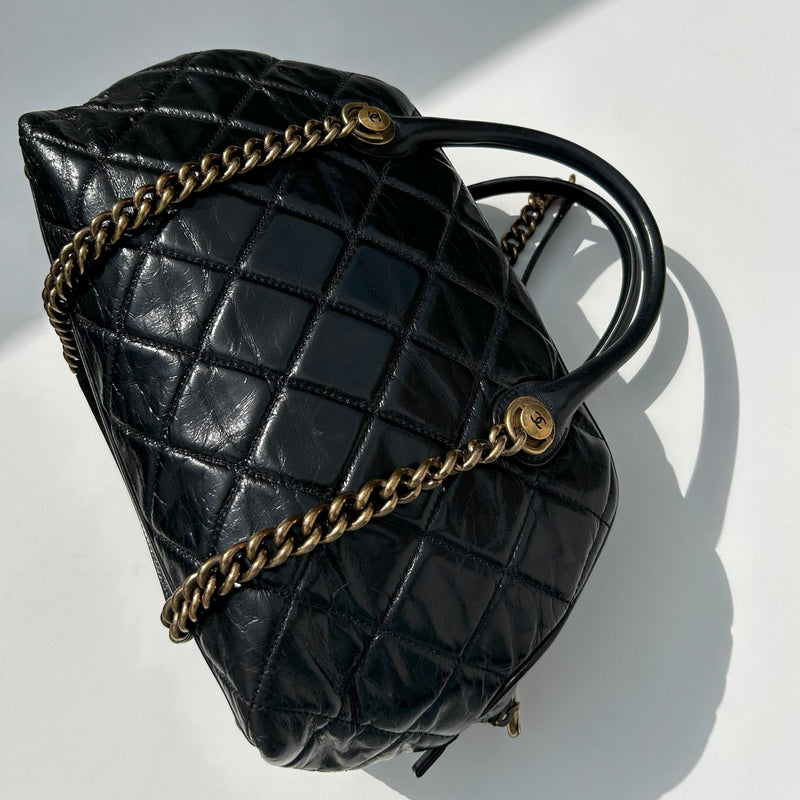 Chanel Black Quilted Gold Hardware Calfskin Bowling Bag
