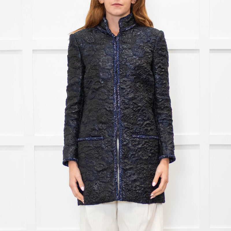 Chanel Black Navy Jacquard Zip Up Jacket