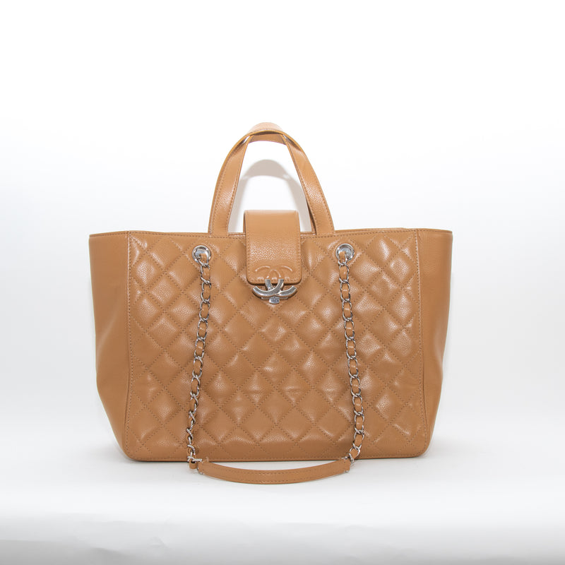 Chanel Tan Caviar CC Box Large Quilted Tote