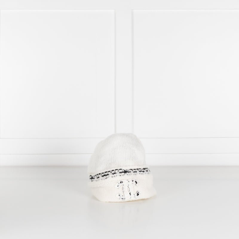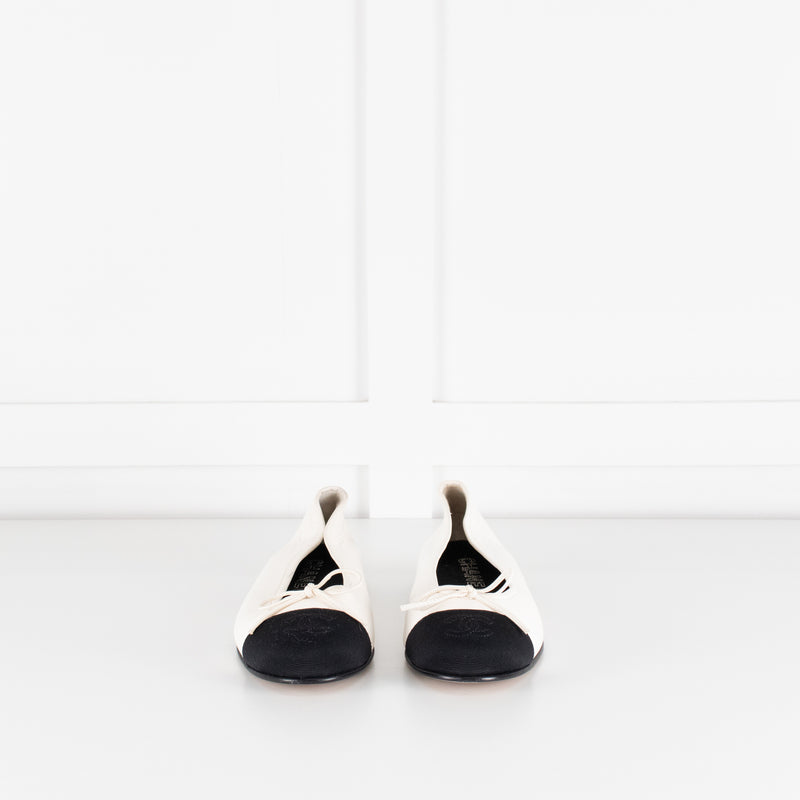 Chanel White Leather Black Fabric Toe Flat Ballet Pumps