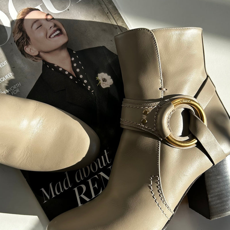 Chloe Taupe Leather Buckle Ankle Boots