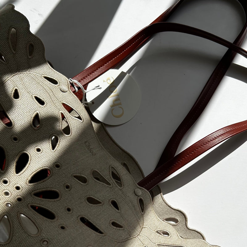 Chloe Beige Canvas Cut-Out Kamilla Tote Bag