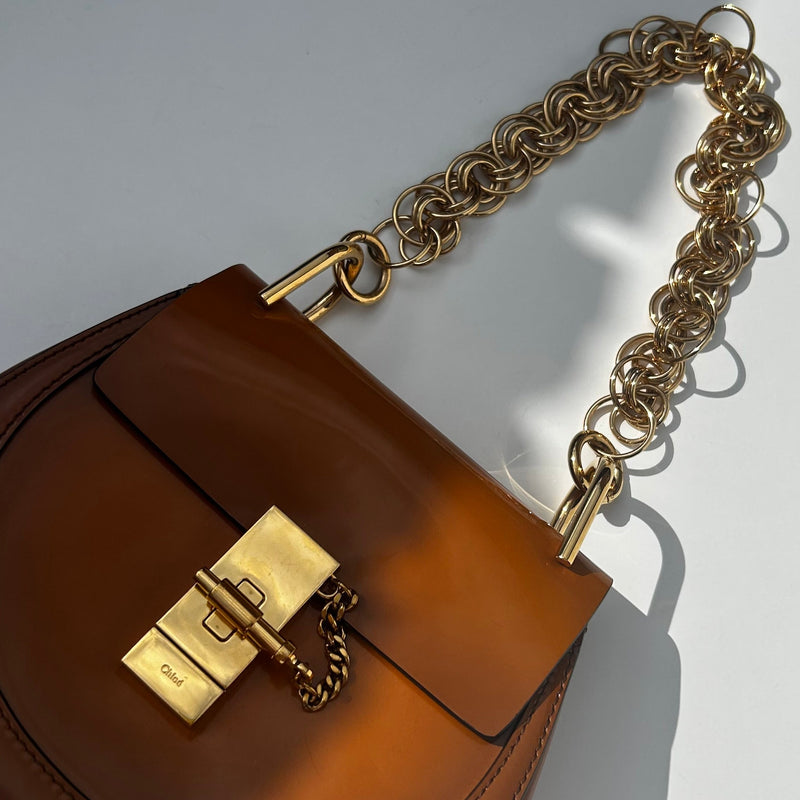 Chloe Caramel Patent Leather Mini Drew Shoulder Bag