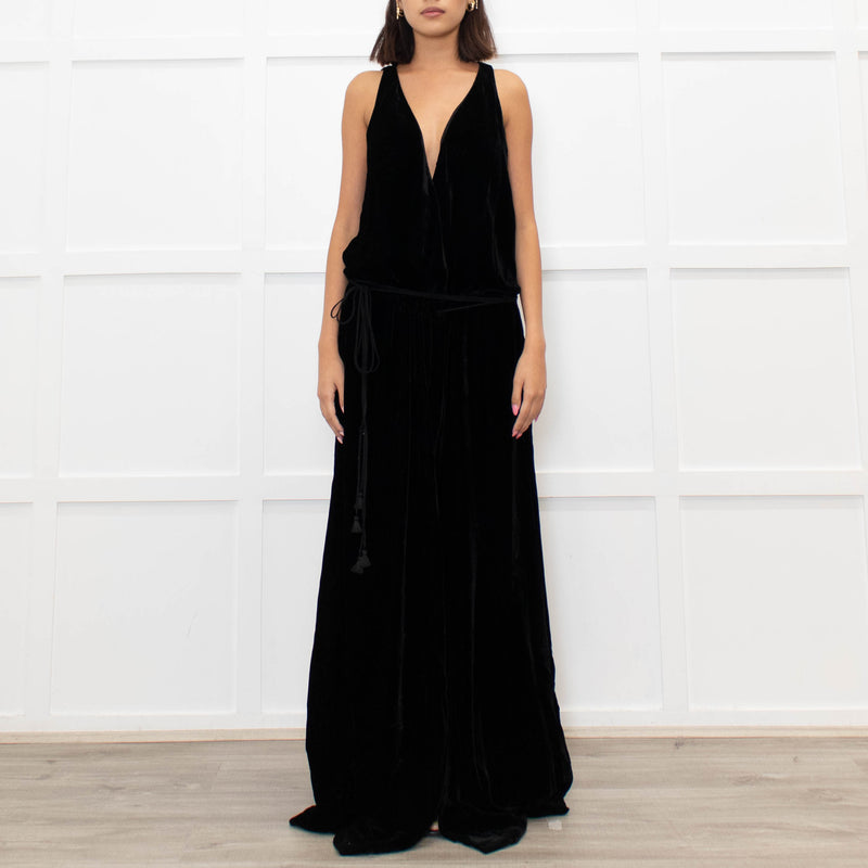 Chloe Black Velvet Sleeveless Wrap Maxi Dress