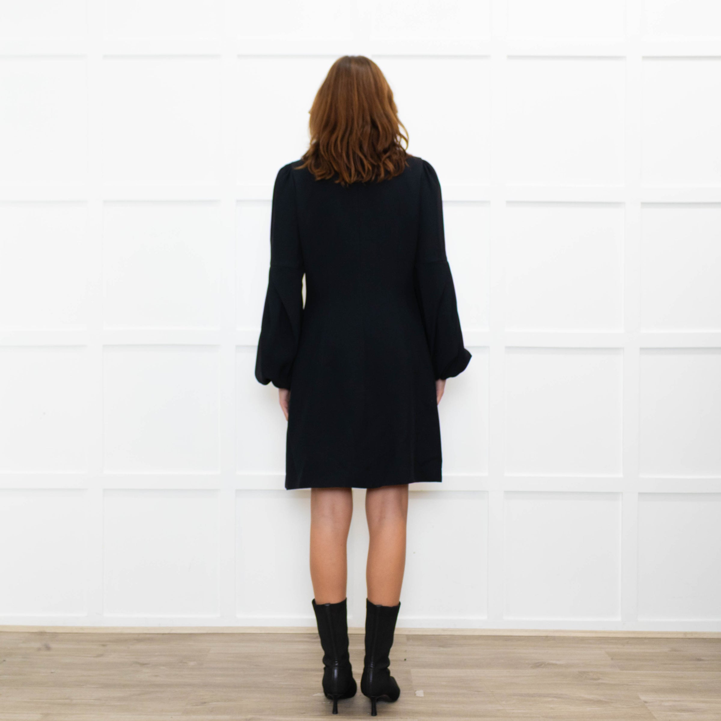 Andrew GN Black Silver Embellished Collar Puffed Sleeves Dress