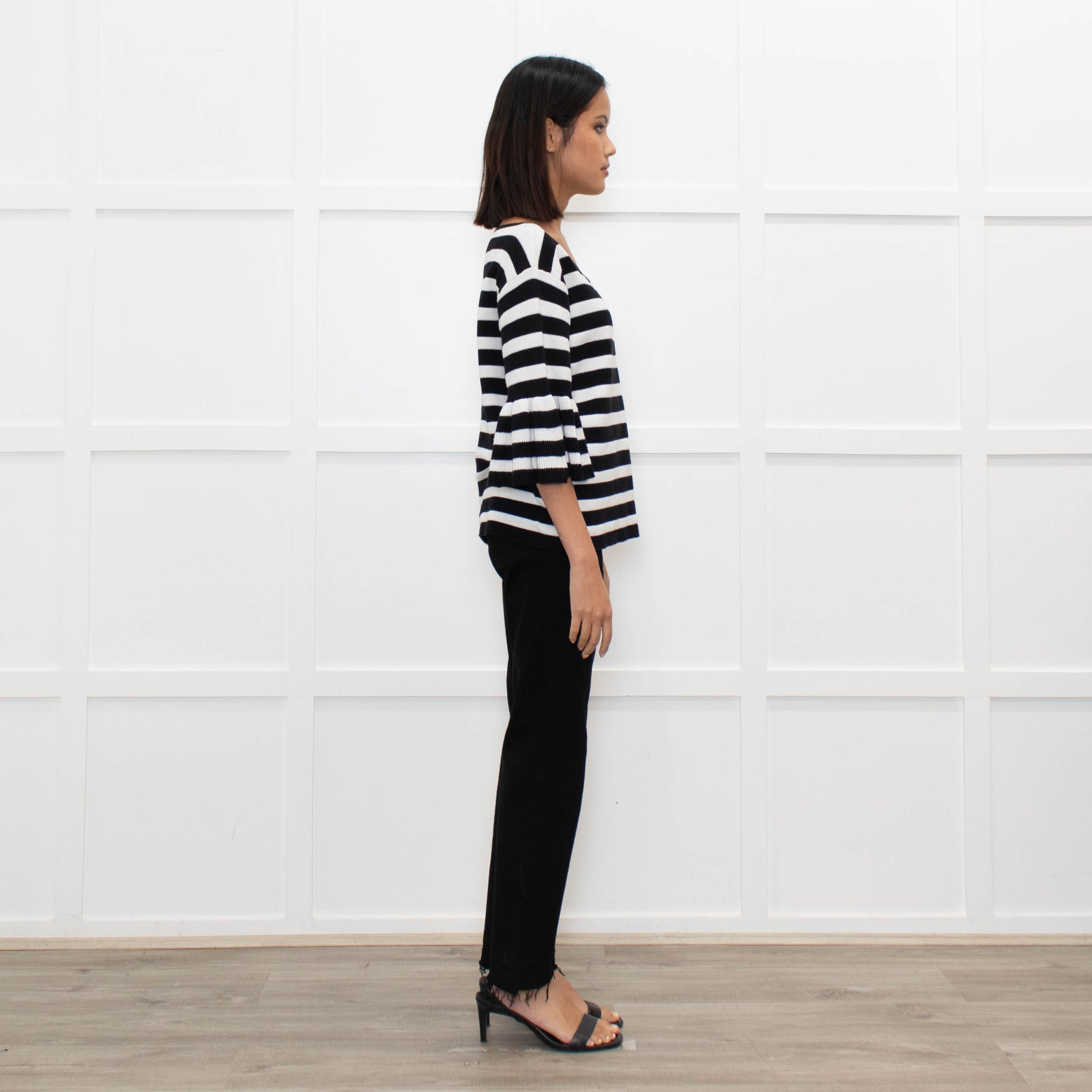 Claudie Pierlot Black White Striped Frill Sleeve Top