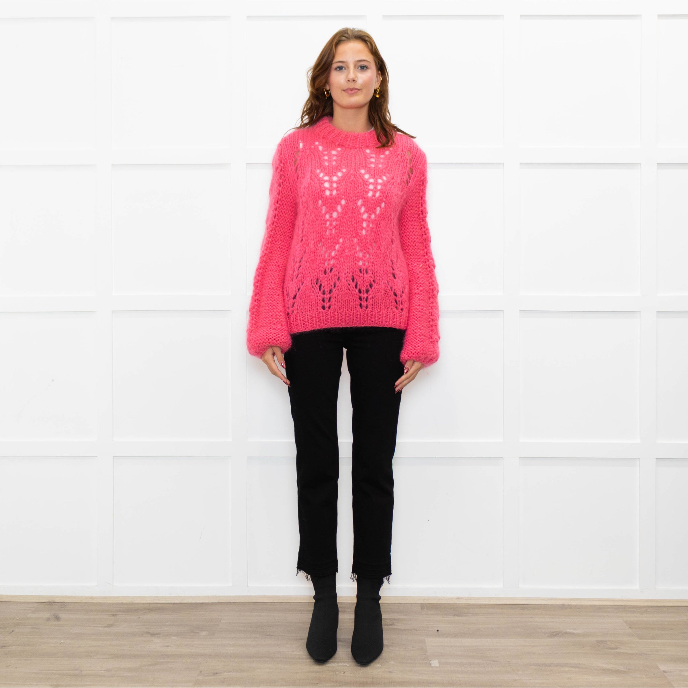 Ganni Bright Pink Mohair Chunky Sweater