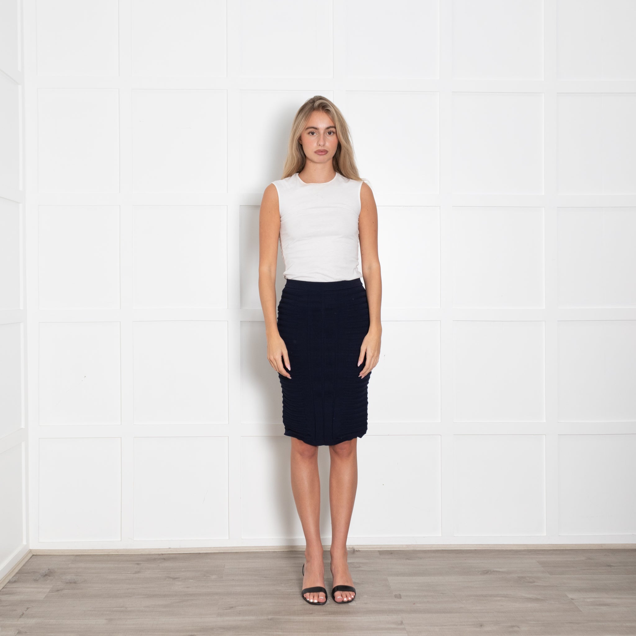 Jonathan Simkhai navy skirt, featuring a stretchy knitted ribbed design.