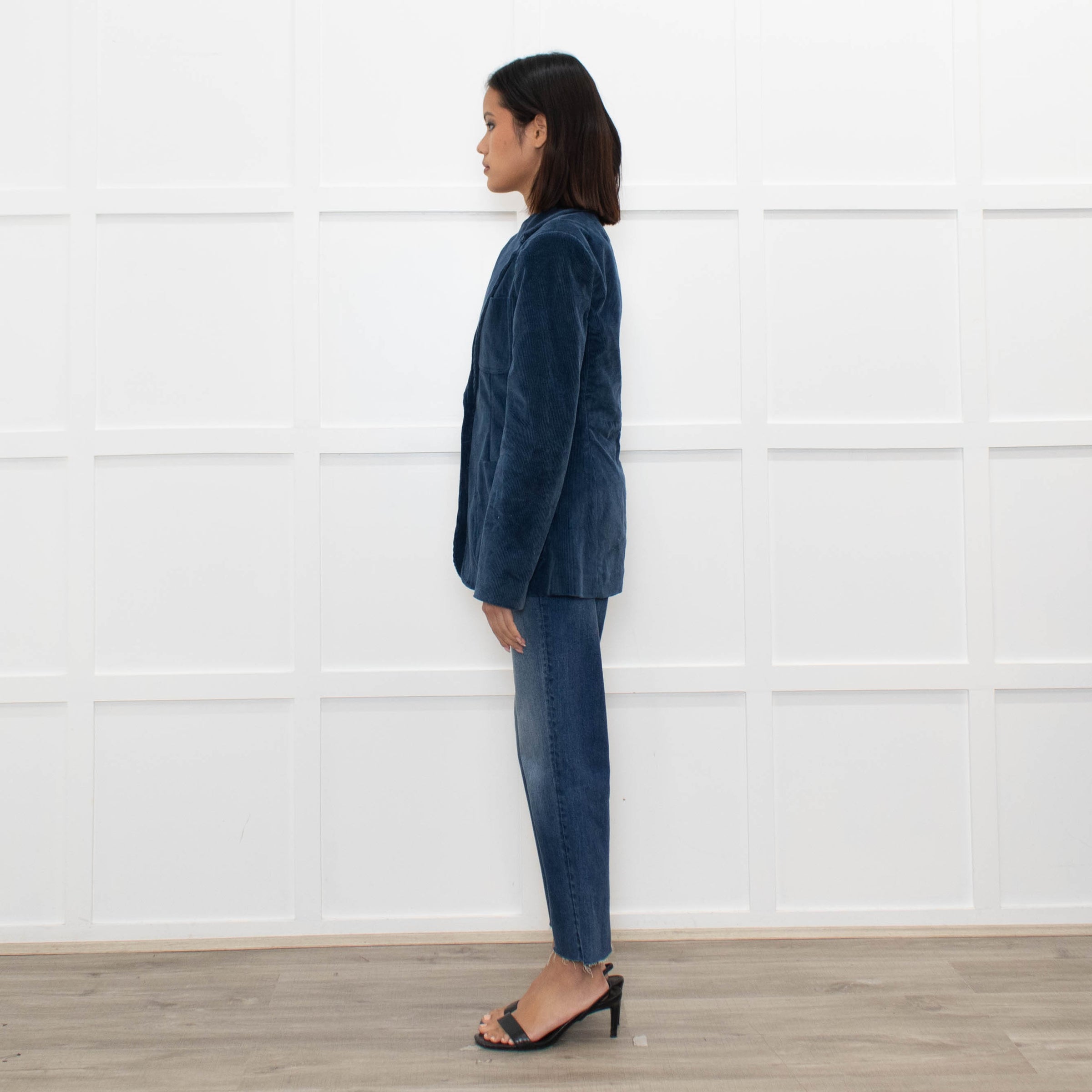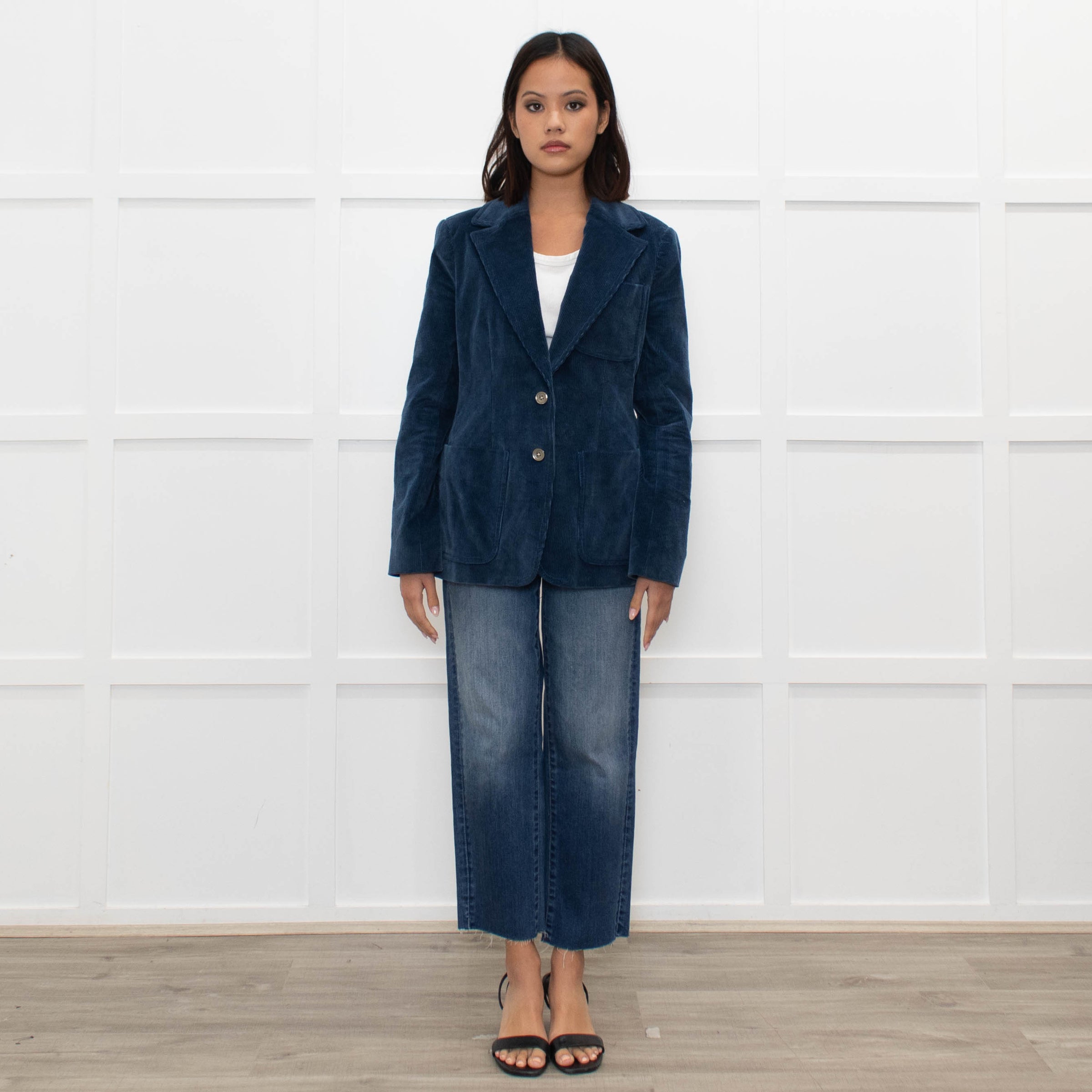 La Vie by Rebecca Taylor tailerd blue cotton blazer crafted from teal corduroy with fine lined texture throughout. Features a refinded collar, two button closure, and three front pockets for a classic yet stylish finish.