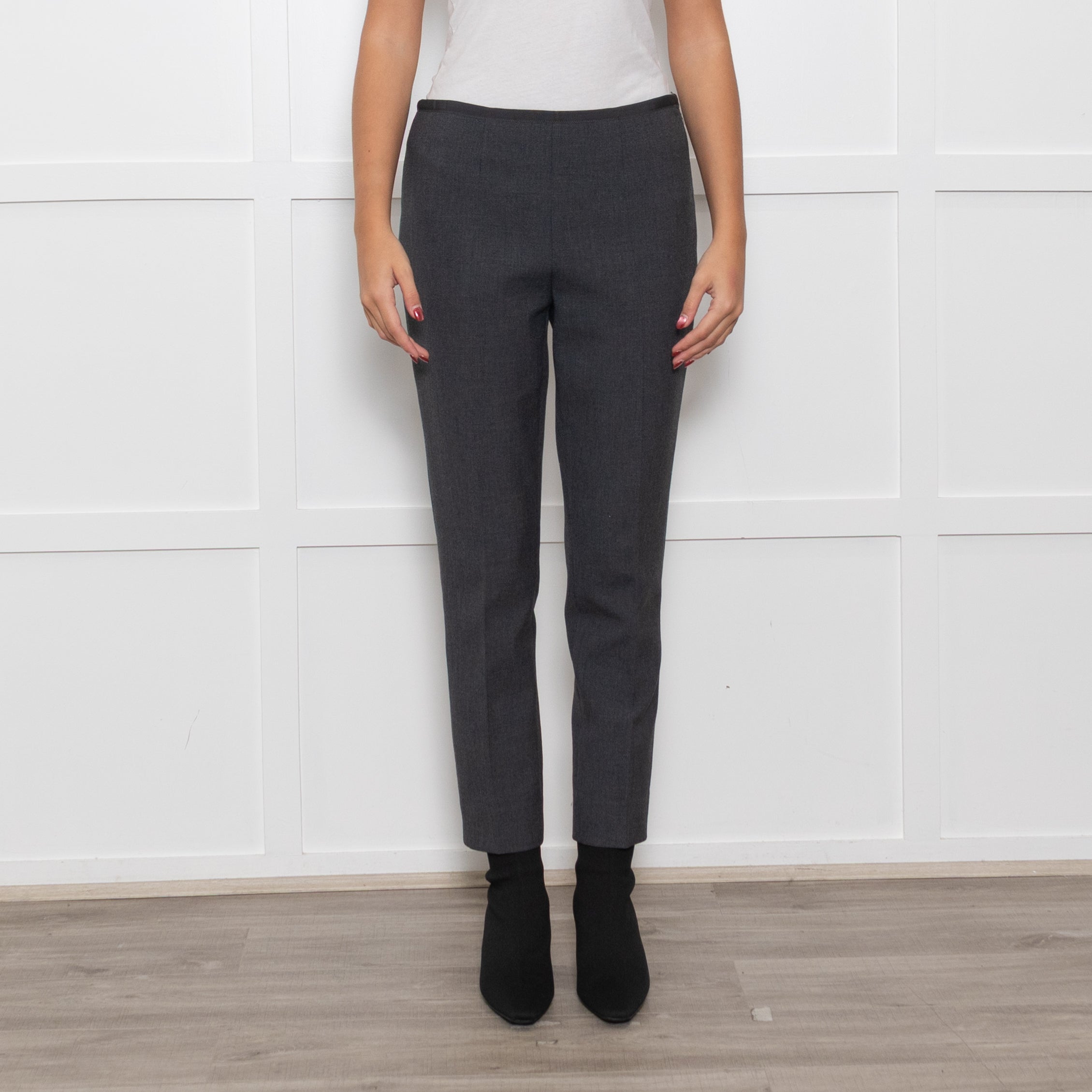 Luisa Spagnoli grey wool trousers featuring a stretchy, comfortable fabric, with grosgrain waist trims and a side zip closure.