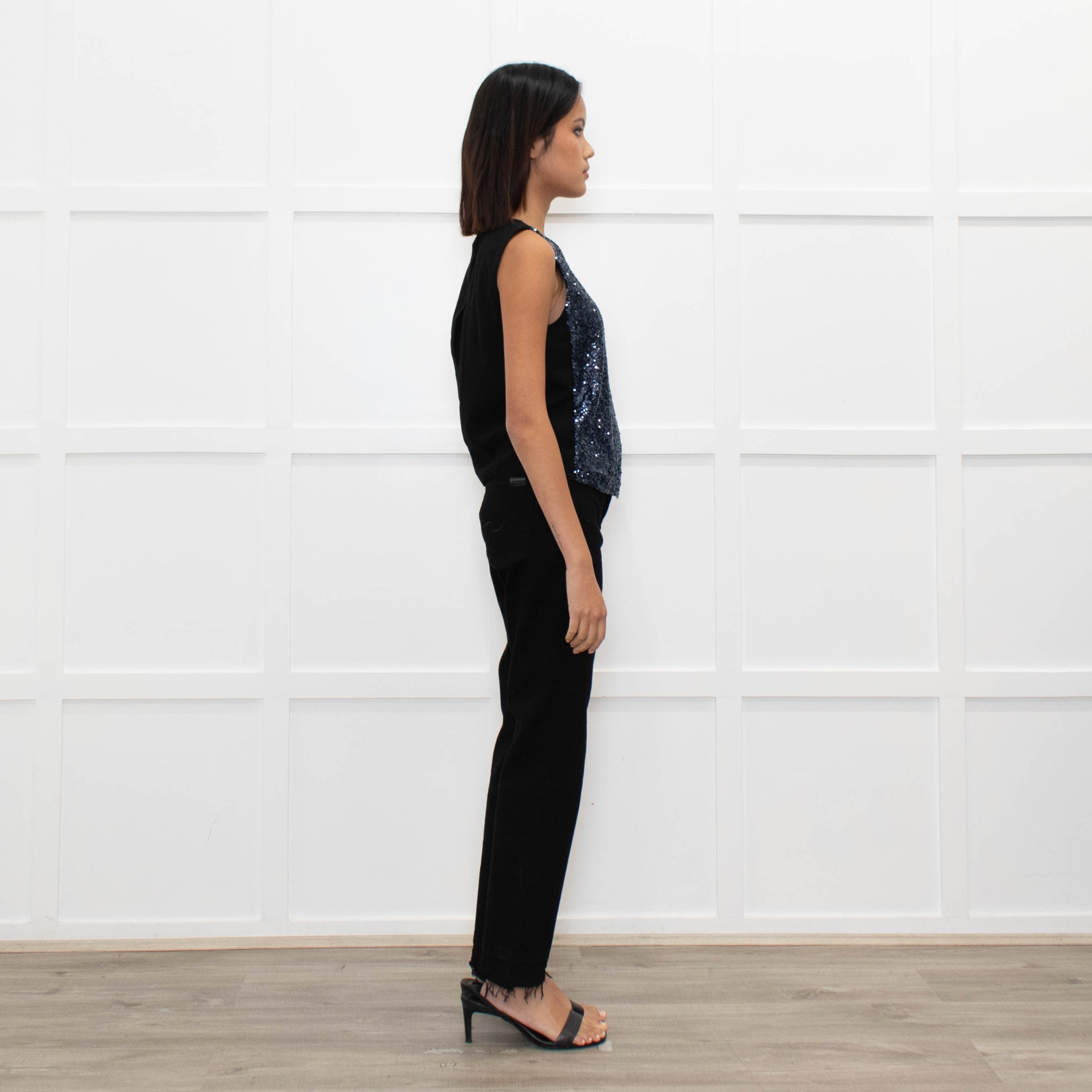Maje Black Blue Front Sequins Sleeveless Top