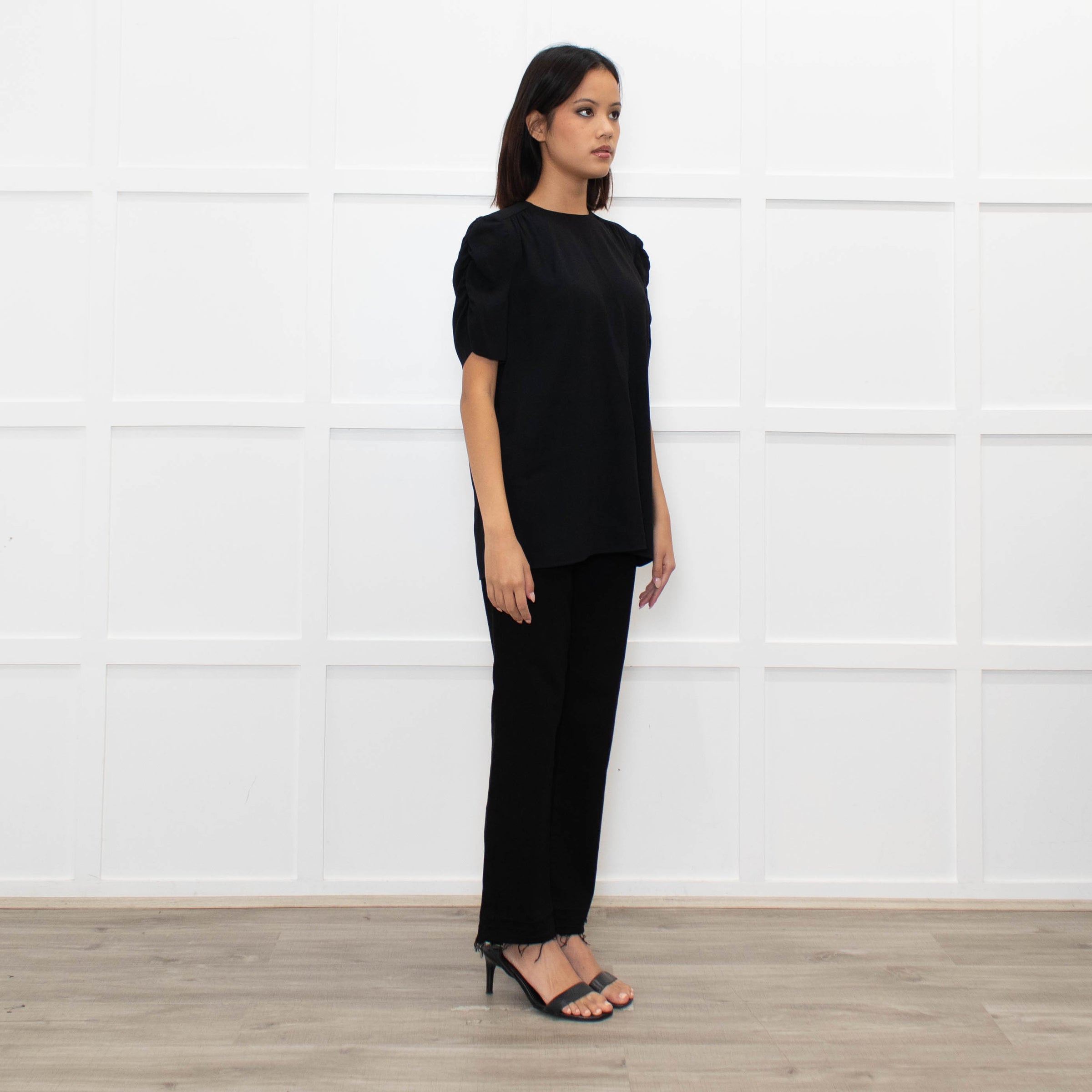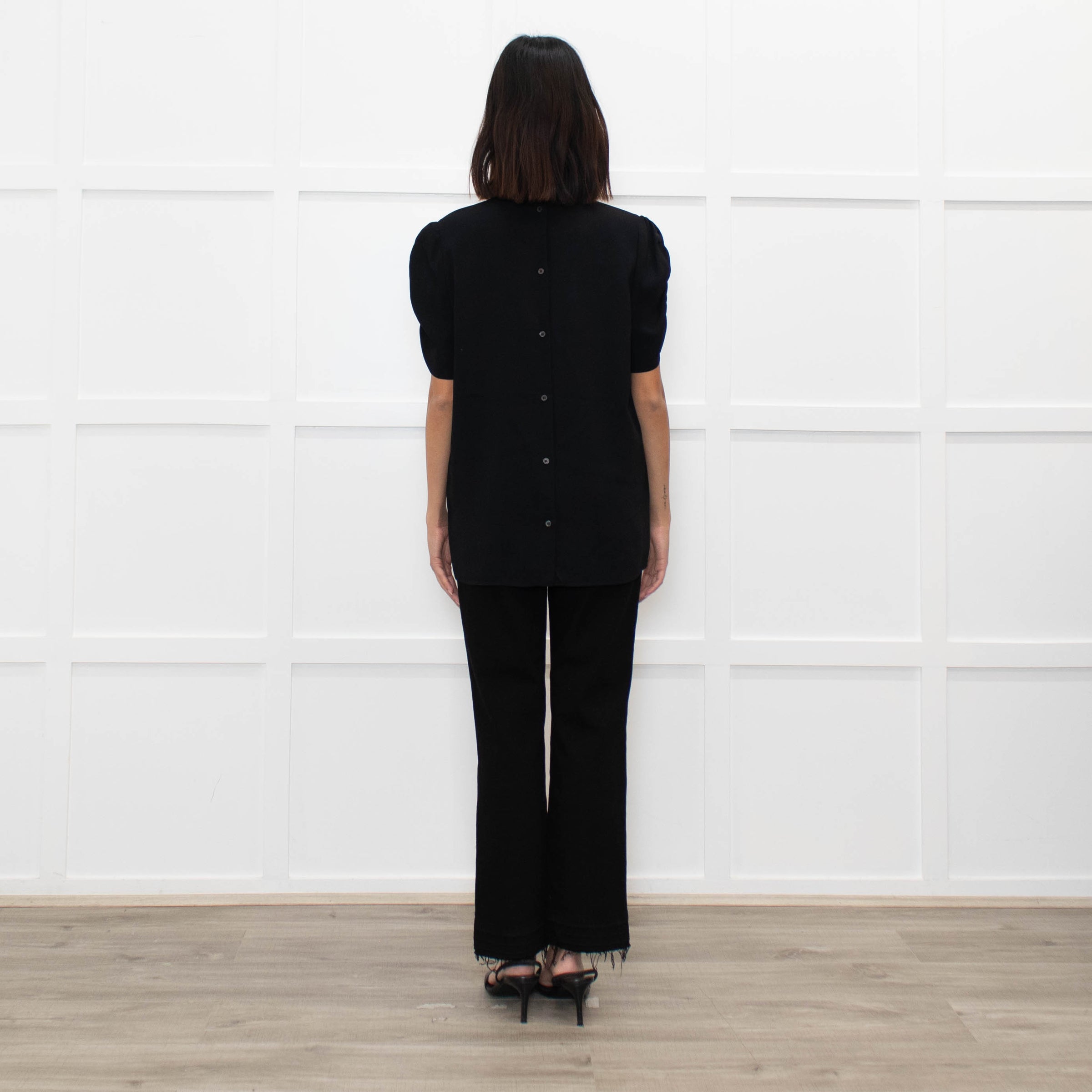 Miu Miu black short ruffle sleeve top, with a complete button-up back.