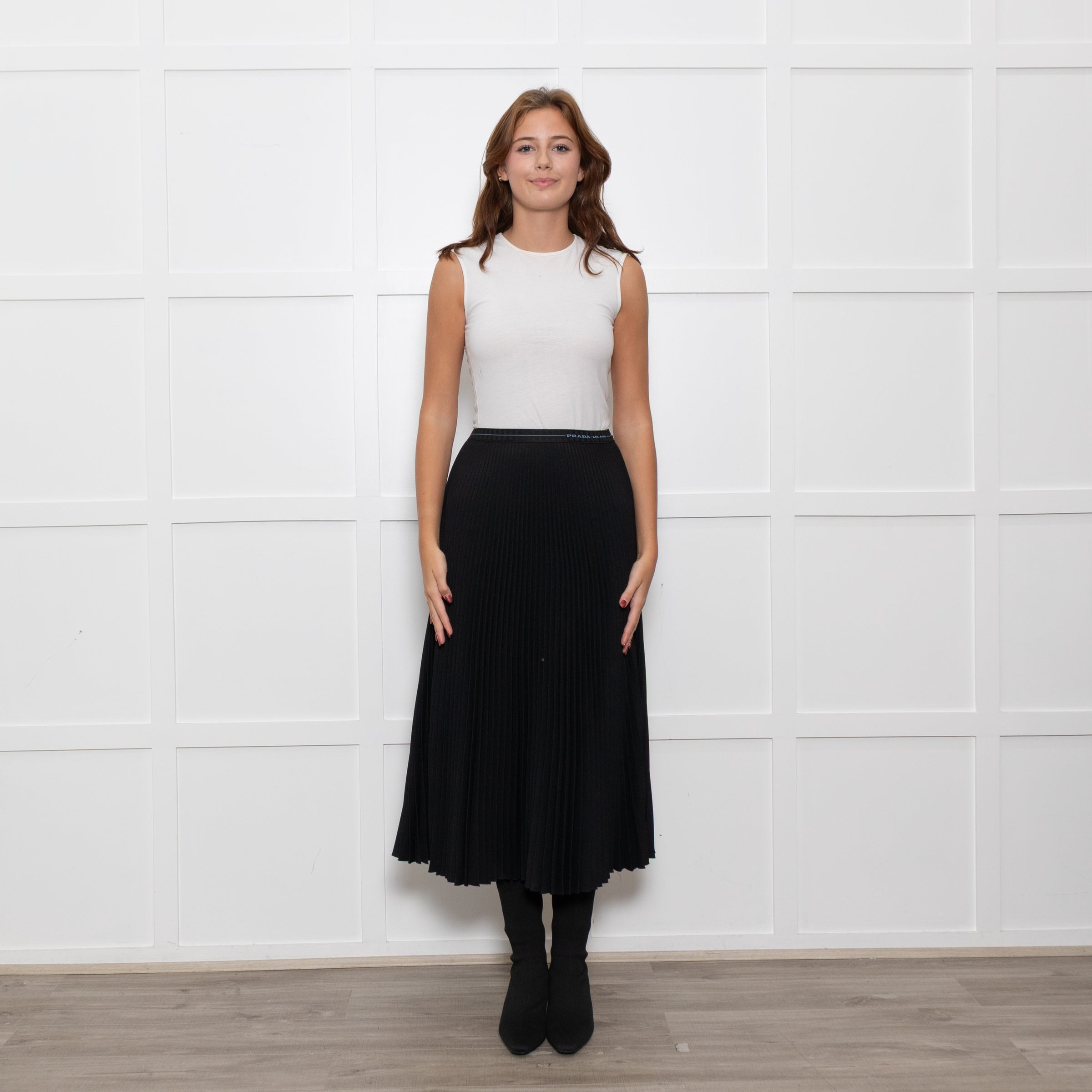 Prada Black Logo Pleated Elasticated Waist Midi Skirt