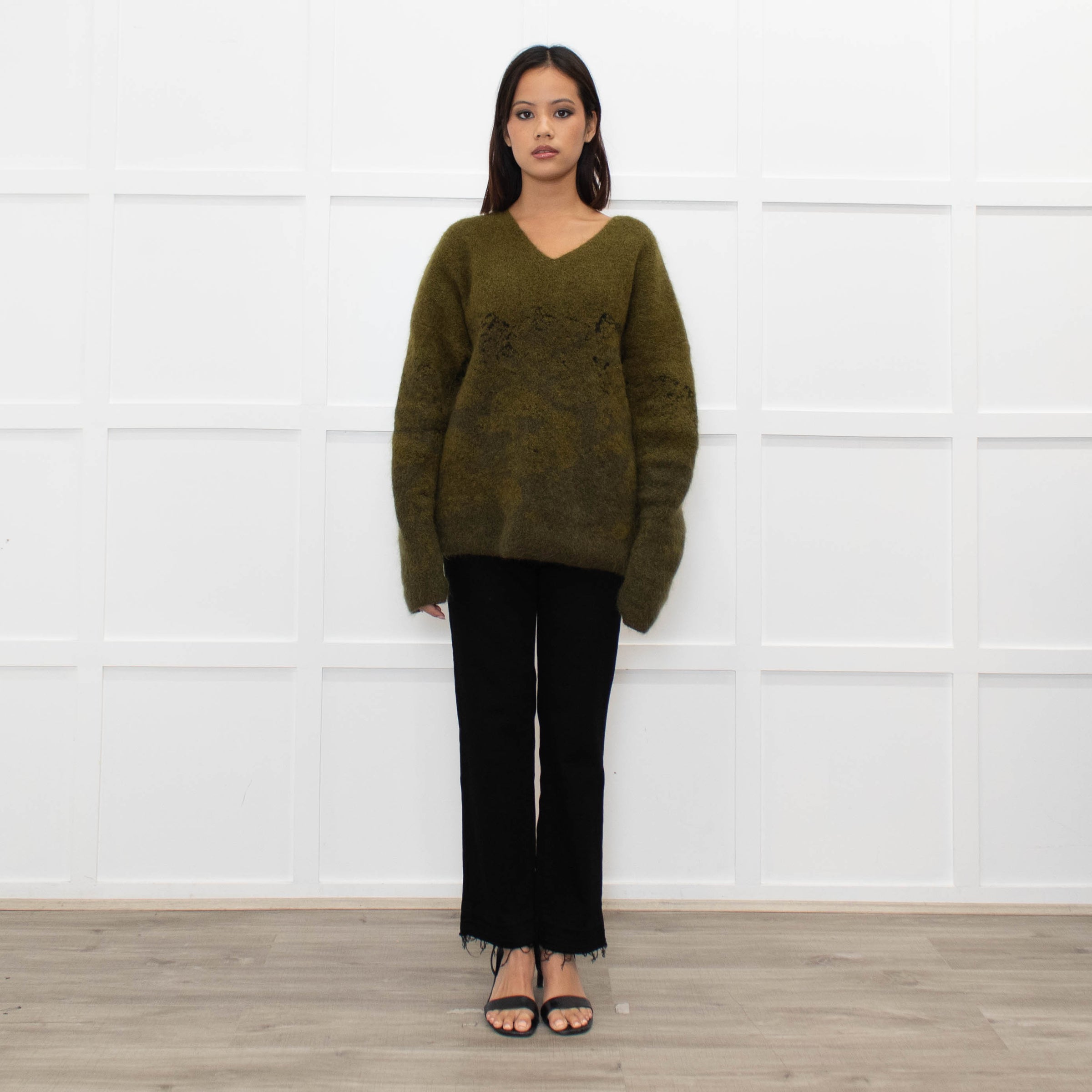 Sarah Pacini comfy V-neck green mohair mix jumper with beautiful, minimal detailing.