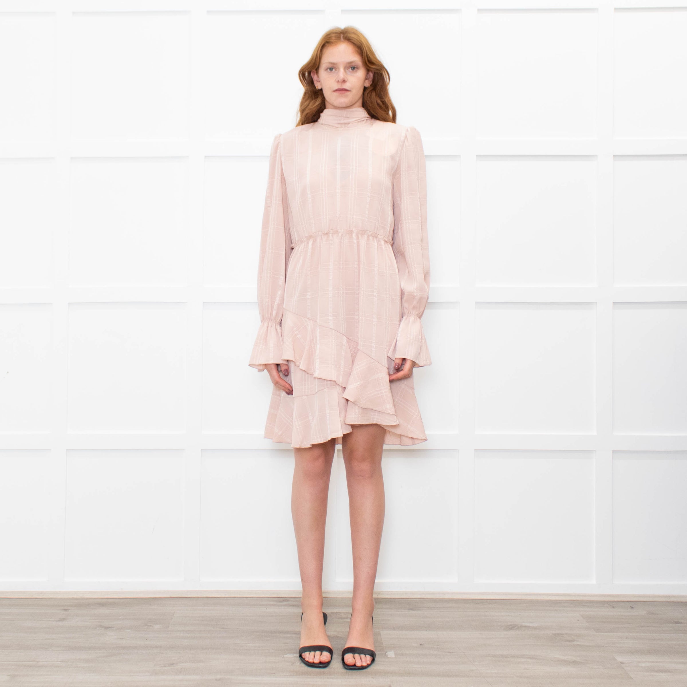 See by Chloe smoky pink frilled dress with an oversized rear neck tie and frilled sleeve cuffs. Accompanied by it's matching slip dress, new with tags.