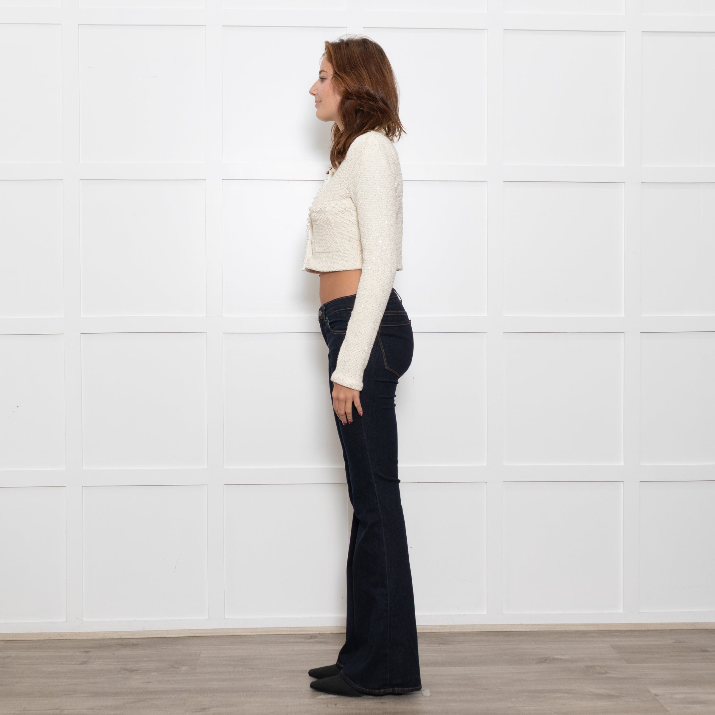 Self Portrait Cream Sequin Tweedy Pearl Detail Jacket