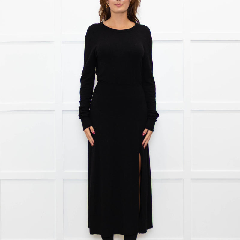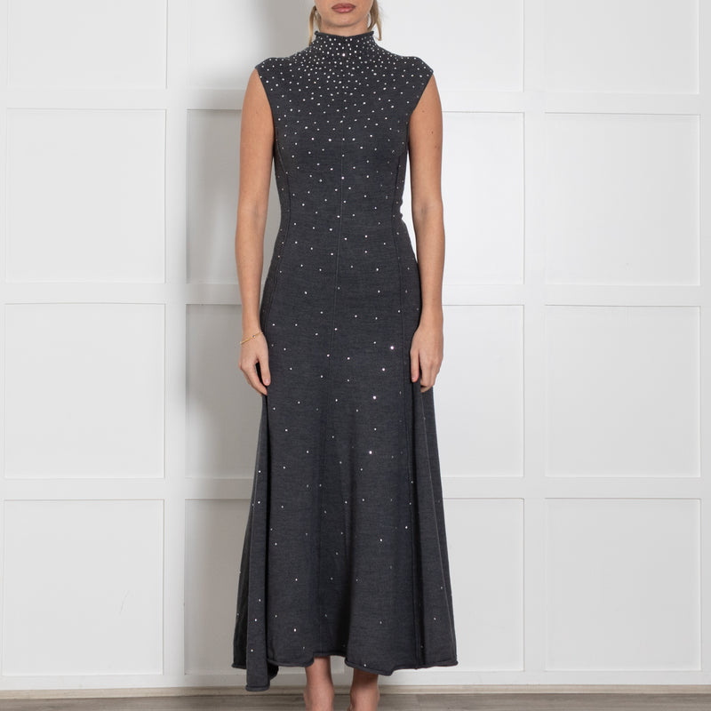 Maje Grey Wool Blend Rhinestone Embellished Knitted Max Dress