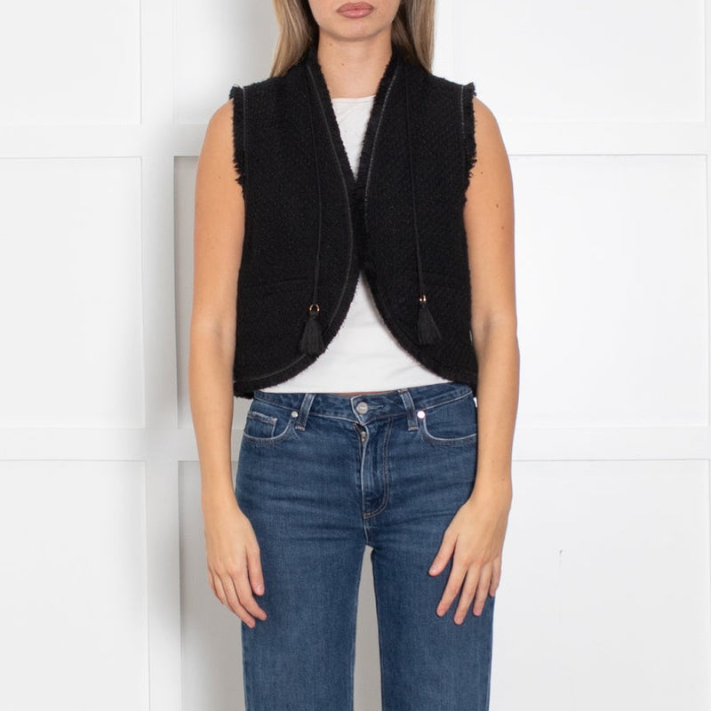 Maje Grey White Pearl Detail Wool Blend Cardigan