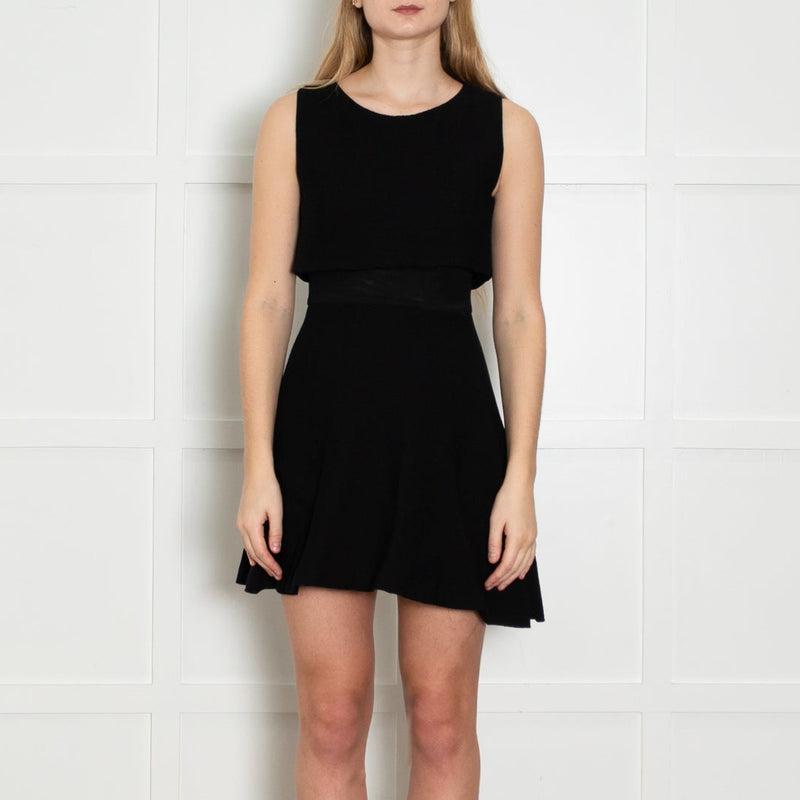 Maje Navy Shimmery Needle Cord Cut Out Shoulder Dress