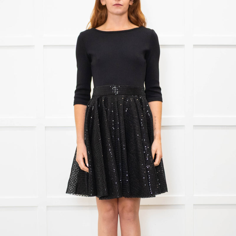 Maje Red White Tweed Short Sleeve Black Trim Dress
