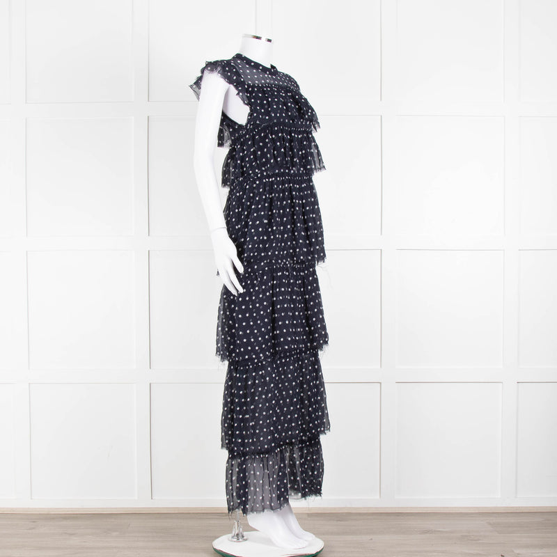 SIR Navy White Polka Dot Sleeveless Ruffled Maxi Dress