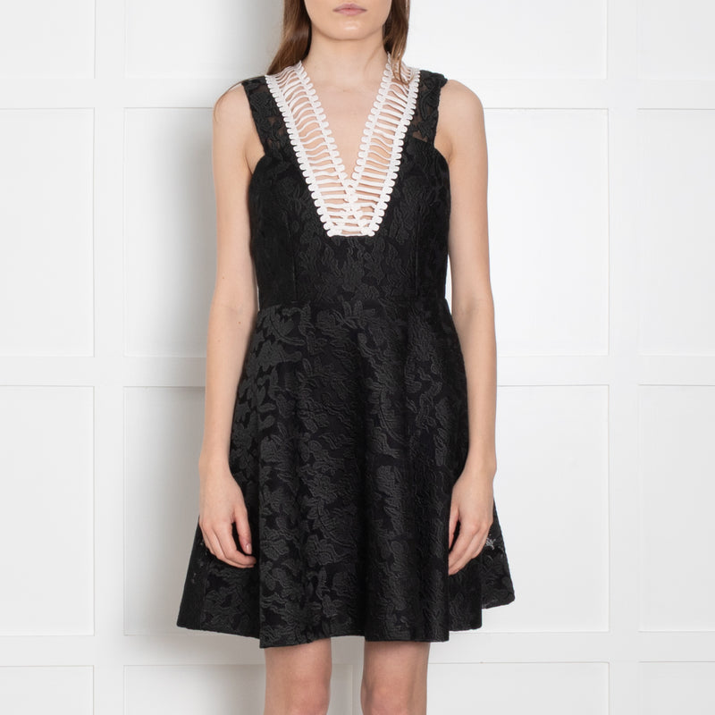 Sandro Black Jacquard White Trim Sleeveless Dress