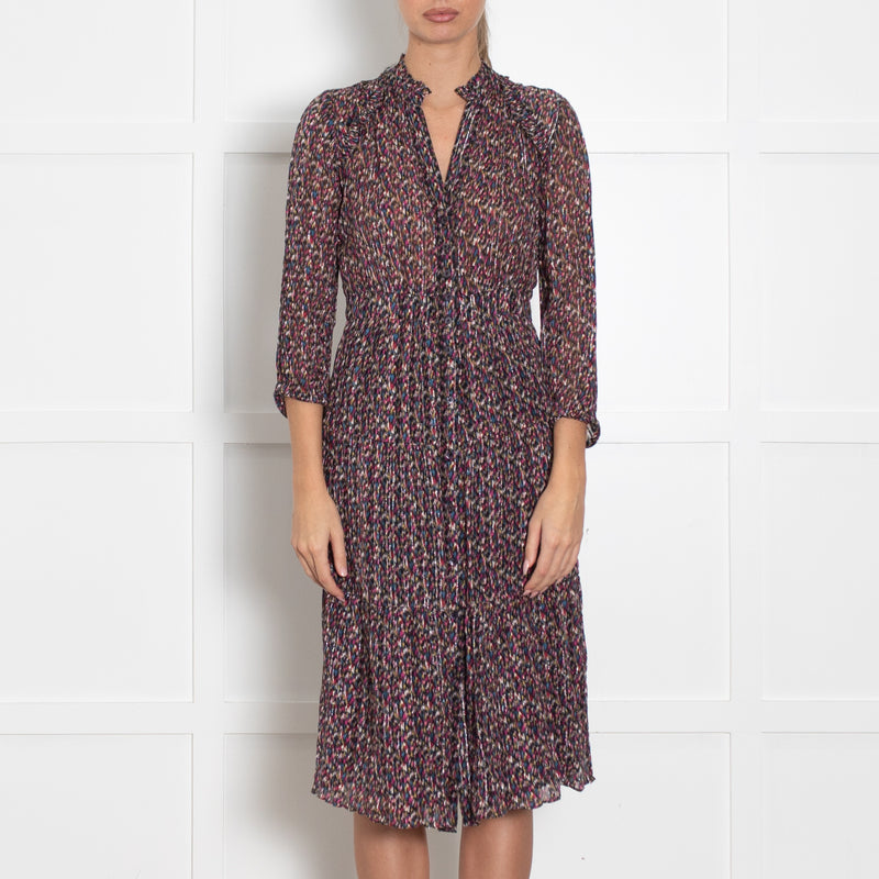 BA&SH Multicoloured Button Up Midi Long Sleeve Frilled Dress