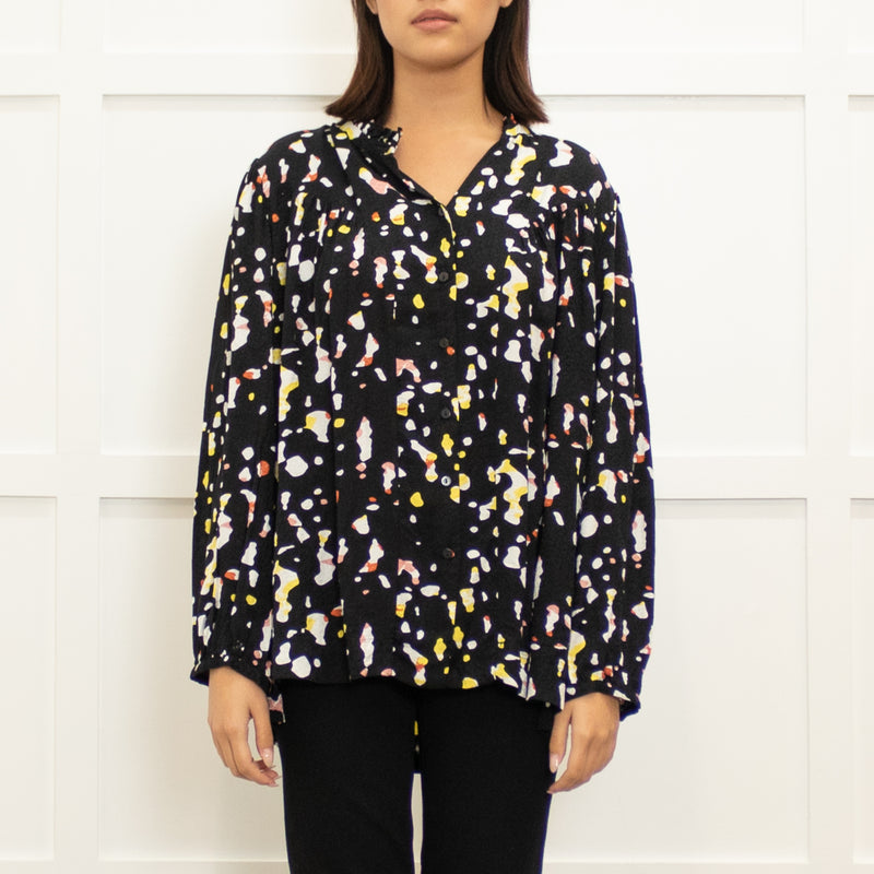 Ba&sh Black Floral Blouse with Gathered Cuffs