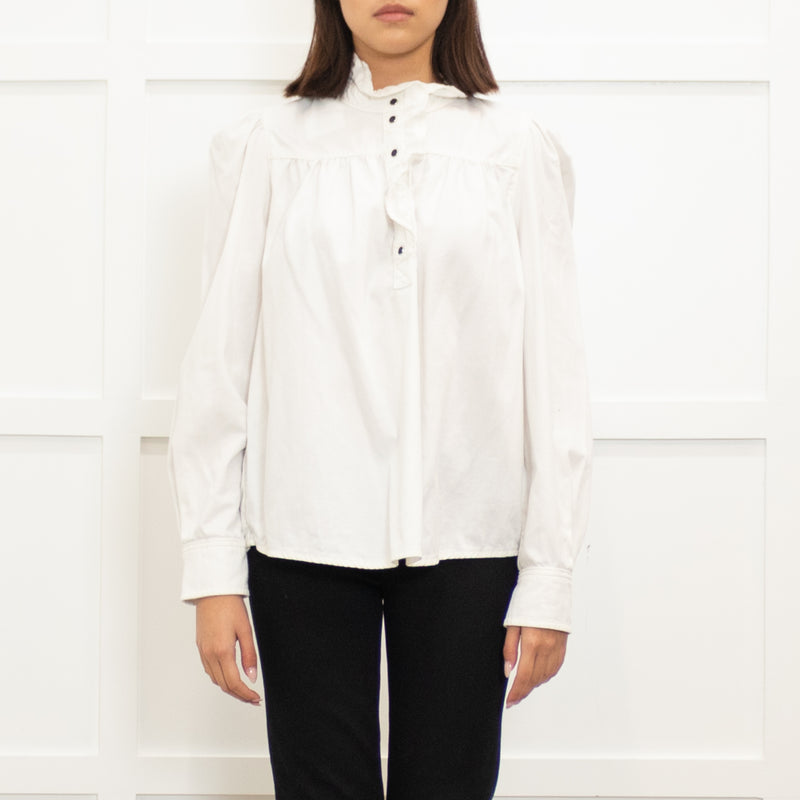 Ba&SH Cream Cotton Frill Trim Long Sleeve Top