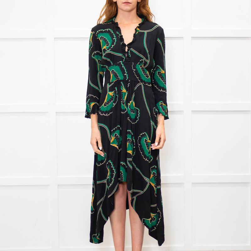 Ba&sh Black Green Frill Trim Midi Dress
