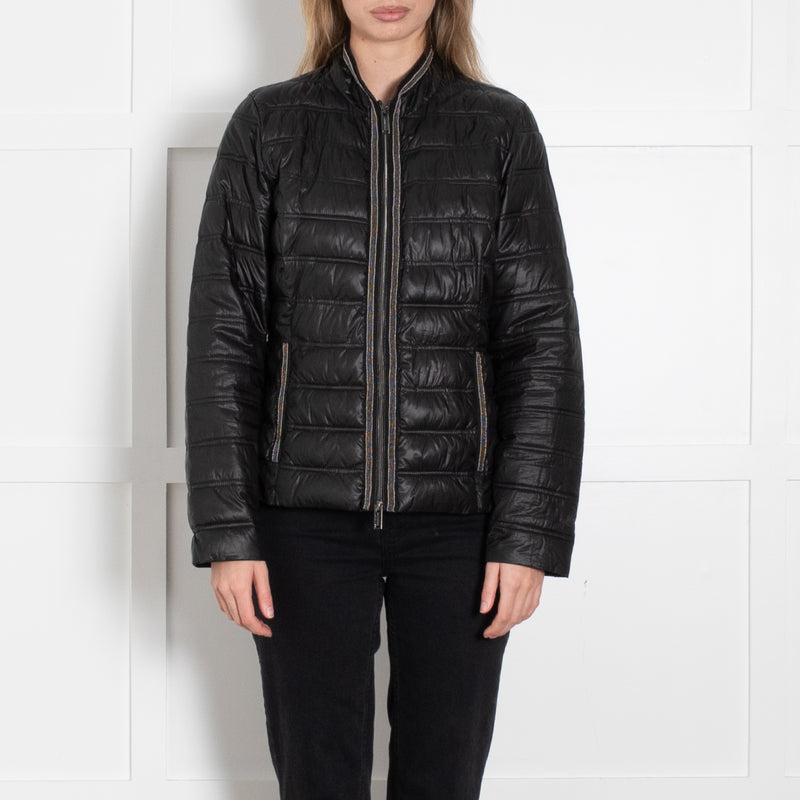 Rino & Pelle Black Nylon Mix Puffa Jacket With Silver Beading